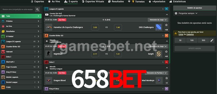 O 658BET oferece uma grande seleção de opções de apostas em e-sports com probabilidades competitivas